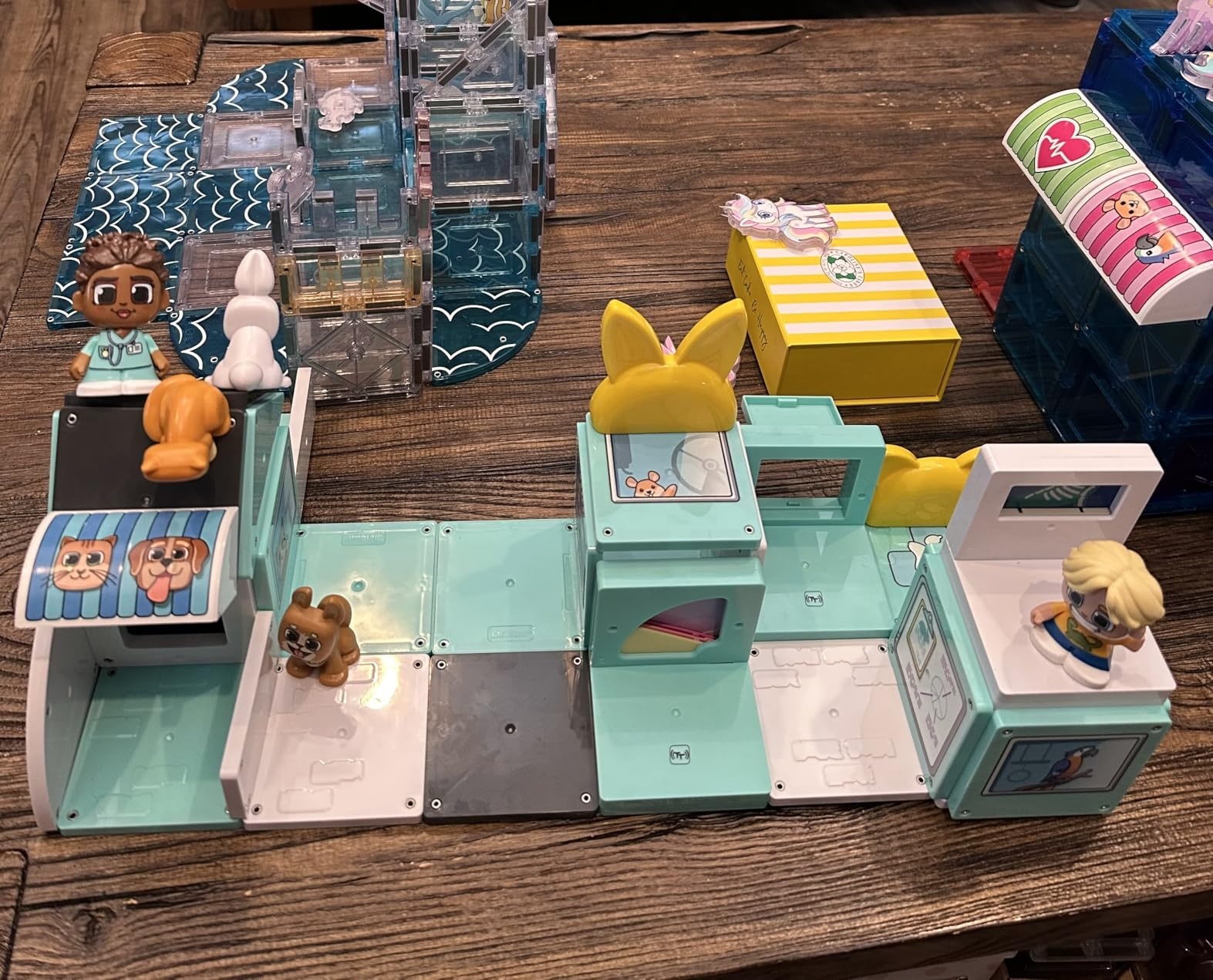 Pet Vet Magnetic Tiles Set, 48 Piece Magnet Tiles for Kids with Sound and Lights, Innovative Action Play Kids Magnetic Tile Toys, Ages 3-6