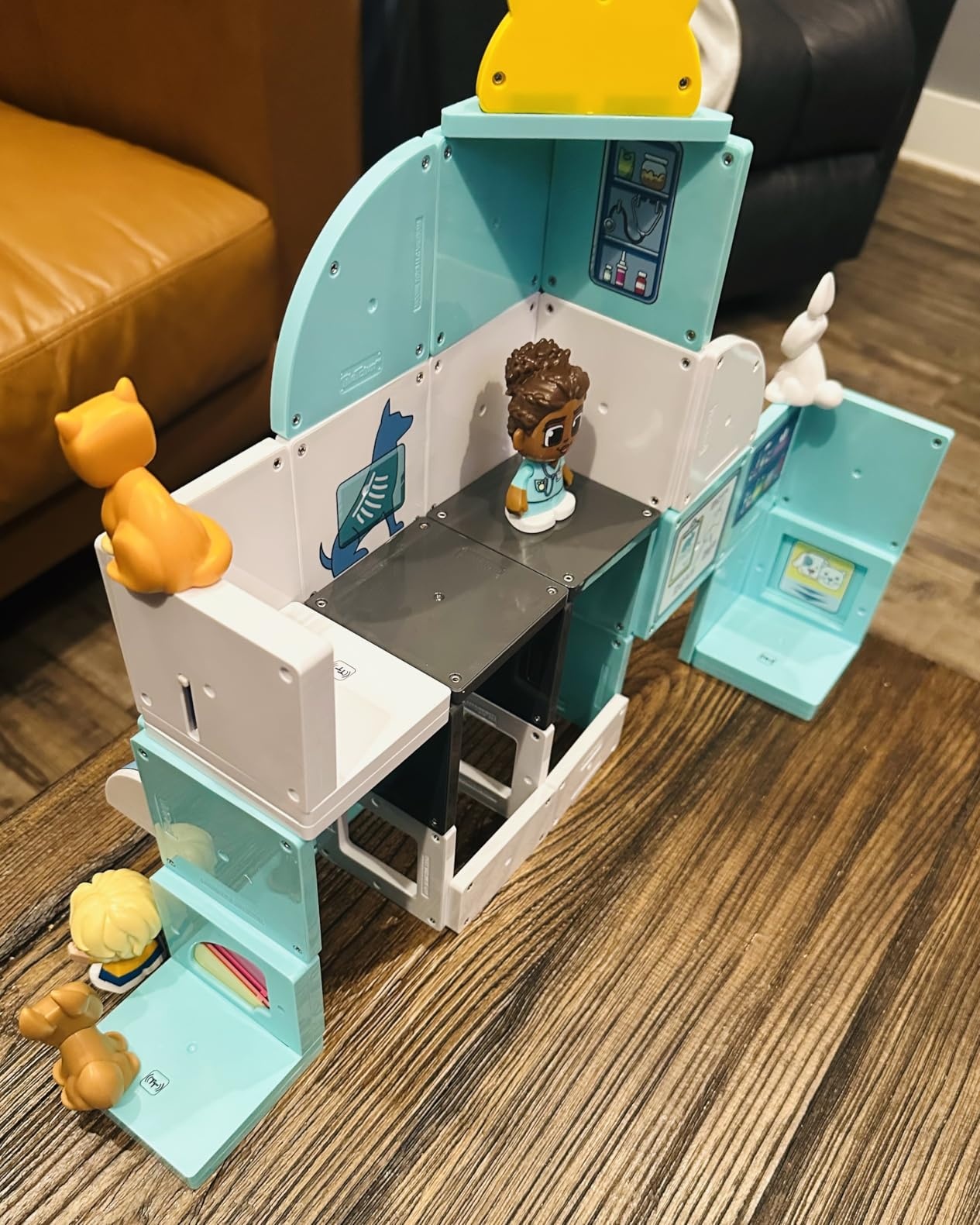 The Pet Vet Set with sounds and lights is adorable – 48 pieces inspire vet play with animals. Interactive features keep kids engaged. Easy to build and clean. Perfect for animal lovers – encourages caring and creativity!